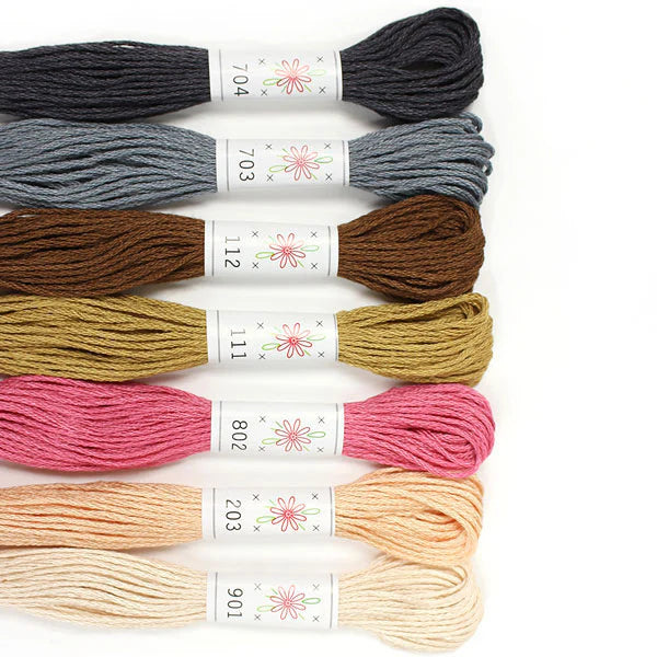 Sublime Embroidery Floss color palettes have seven, 8.75 yd skeins of the finest quality, six-strand embroidery floss. Each palette tells a story, and every color is a character! (There are also secret messages on the paper bands.)